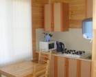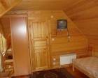В домиках есть необходимая кухонная и столовая посуда (чашки, бокалы, стопки), электрочайник, просторная спальная комната с двуспальной кроватью (или с двумя раздельными), ЖК-телевизор. Душевая и санузел совмещены.