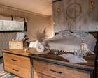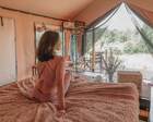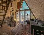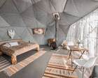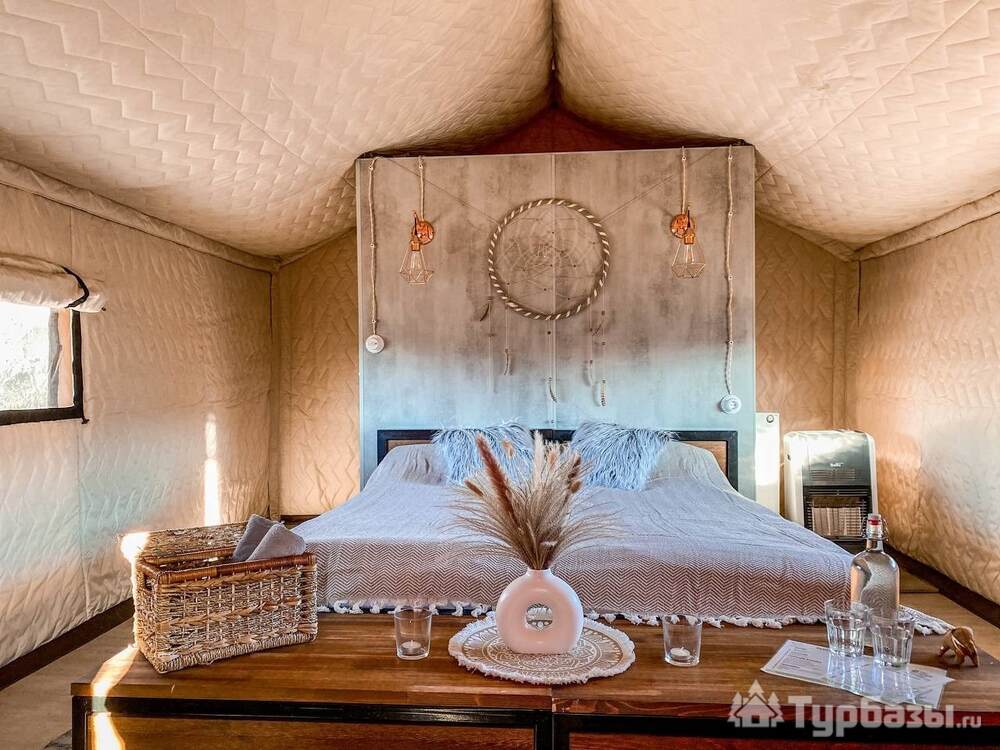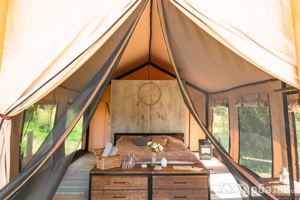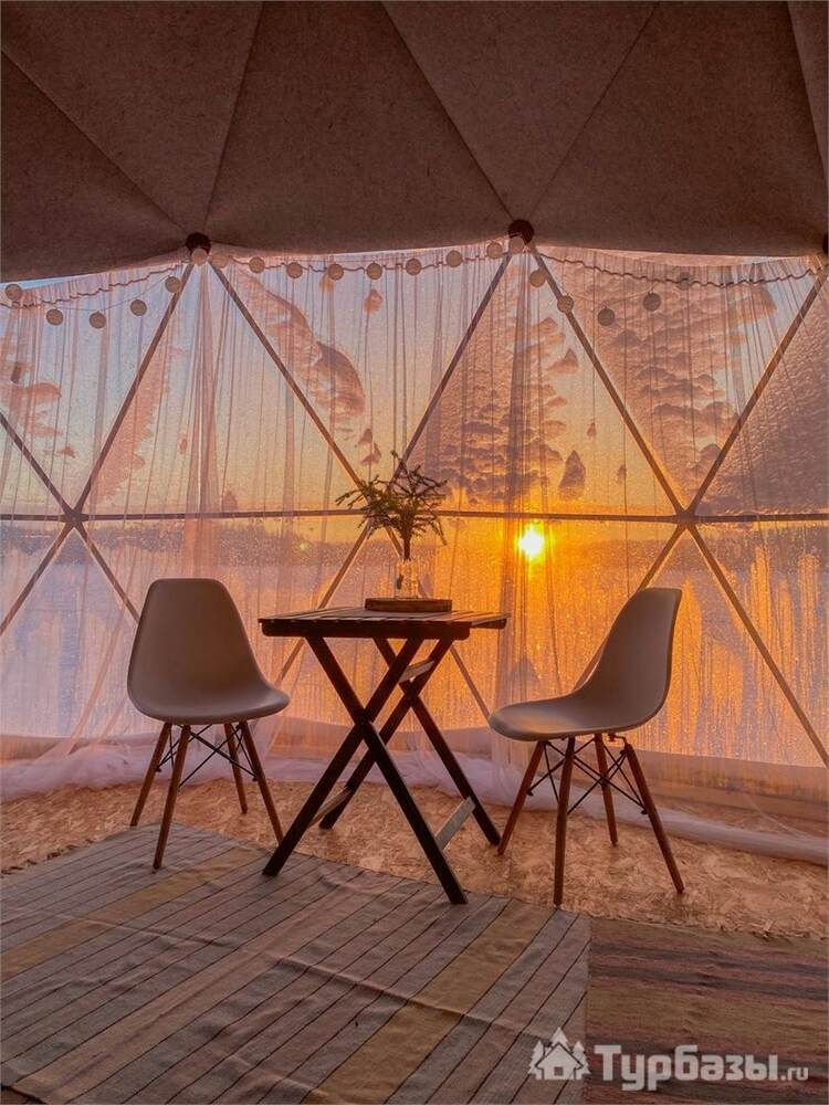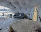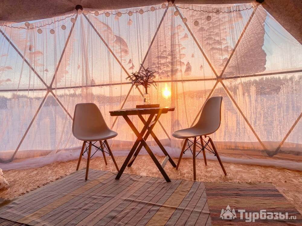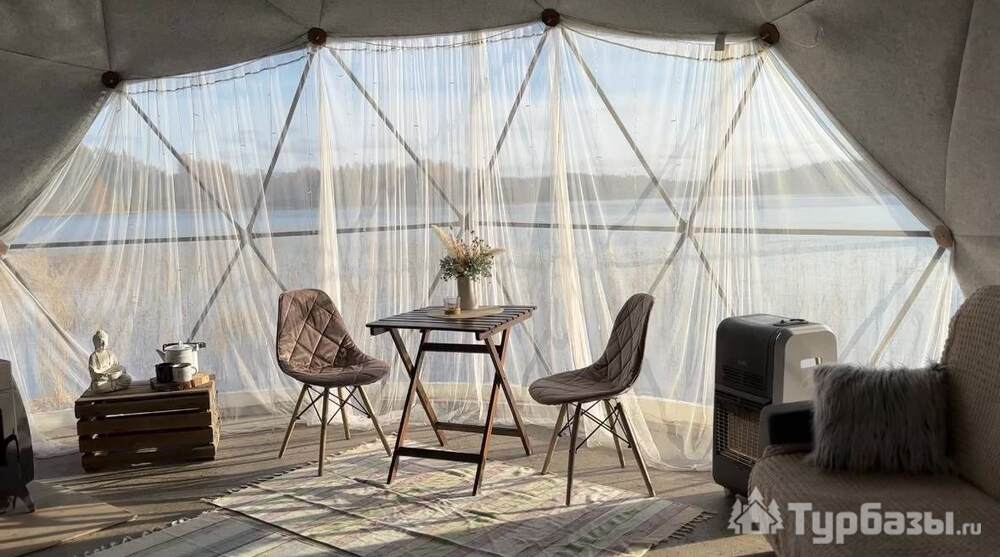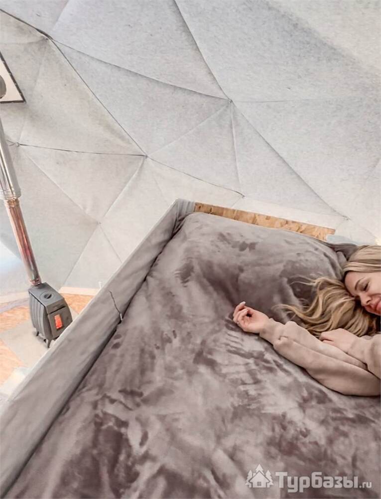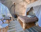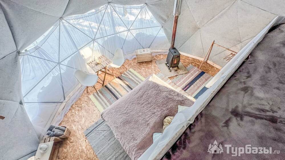 На территории представлены три основных формата жилья — A-Frame домики, safari-lodges и купольные «соты»/домики-сферы. Все юниты спроектированы для круглогодичного использования: тёплые полы, уютные спальни, террасы с видом на озеро и у многих — собственная лаунж-зона. Вместимость комплекса позволяет принять до ~45 гостей одновременно, поэтому объект хорошо подходит как для романтического отдыха, так и для небольших компаний.