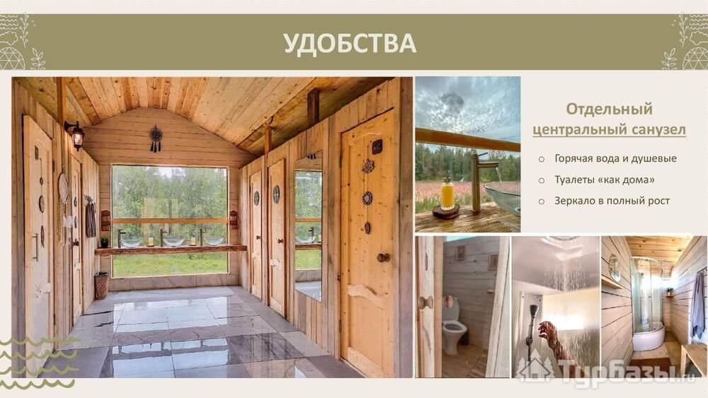 Sky Wood Hills делает ставку на восстановление и неспешный досуг на природе: прогулки по эко-тропам и к смотровым скалам, пирс и водные активности (лодки, sup-борды), кино и библиотека в общей зоне, а также вечерние костры и музыкальные джем-сессии. Для релакса — русская баня на берегу и японская горячая купель (офура); администрация предлагает банные и SPA-пакеты, мастер-классы и творческие программы. Питомцы принимаются без доплаты — это отмечают как одно из преимуществ при бронировании.