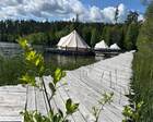Глэмпинг Sky Wood Hills расположен на просторной прибрежной территории в Ленинградской области — примерно в 2х часах езды от Санкт- Петербурга по трассе. Комплекс занимает около 40 гектаров нетронутой природы: лес, скалы, озеро и причал; подъезд асфальтированный, на въезде — ресепшн и охраняемая парковка.