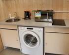 На первом этаже - спальня, кухня, холодильник, телевизор, все удобства.