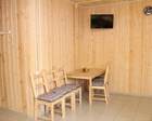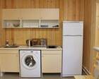 На первом этаже - кухня, холодильник, телевизор, все удобства.