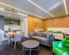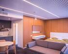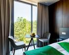 К приему гостей готовы 34 апартамента, каждый из которых оформлен по индивидуальному дизайну. Широкое панорамное окно позволит насладиться прекрасным видом, на террасе оборудована зона отдыха. Постояльцы с ограниченными возможностями могут заказать специально оборудованную комнату.