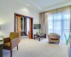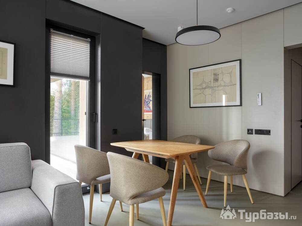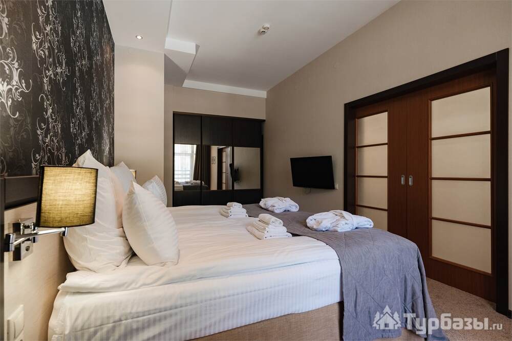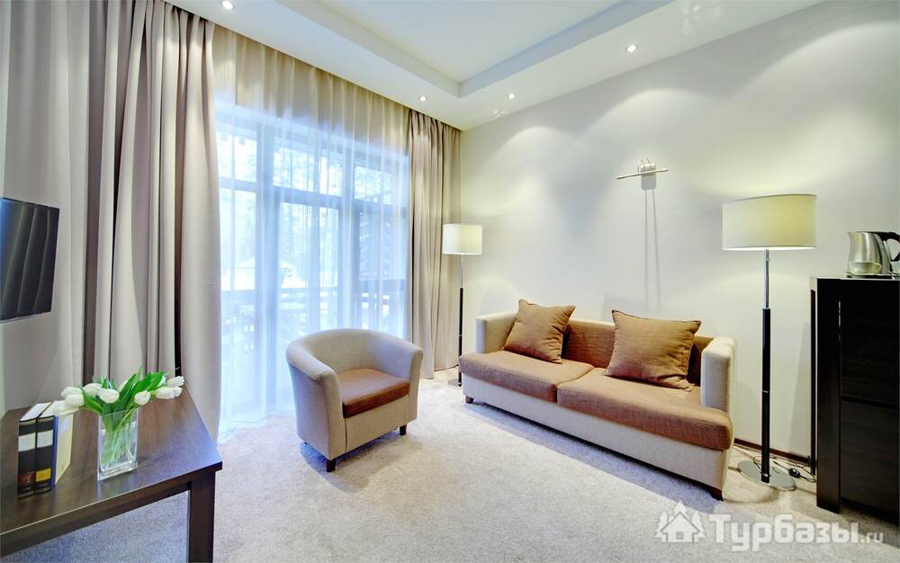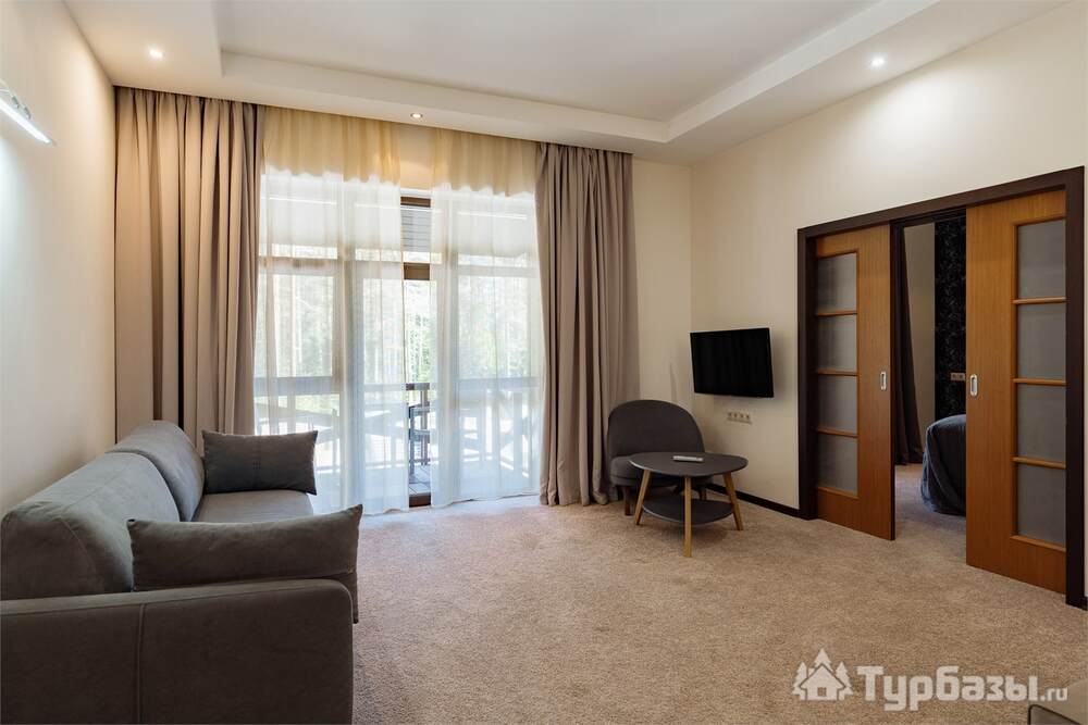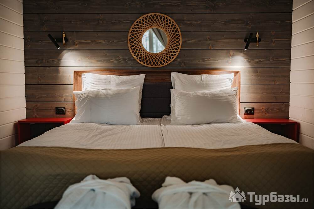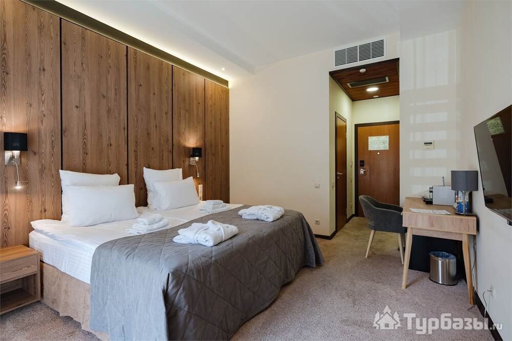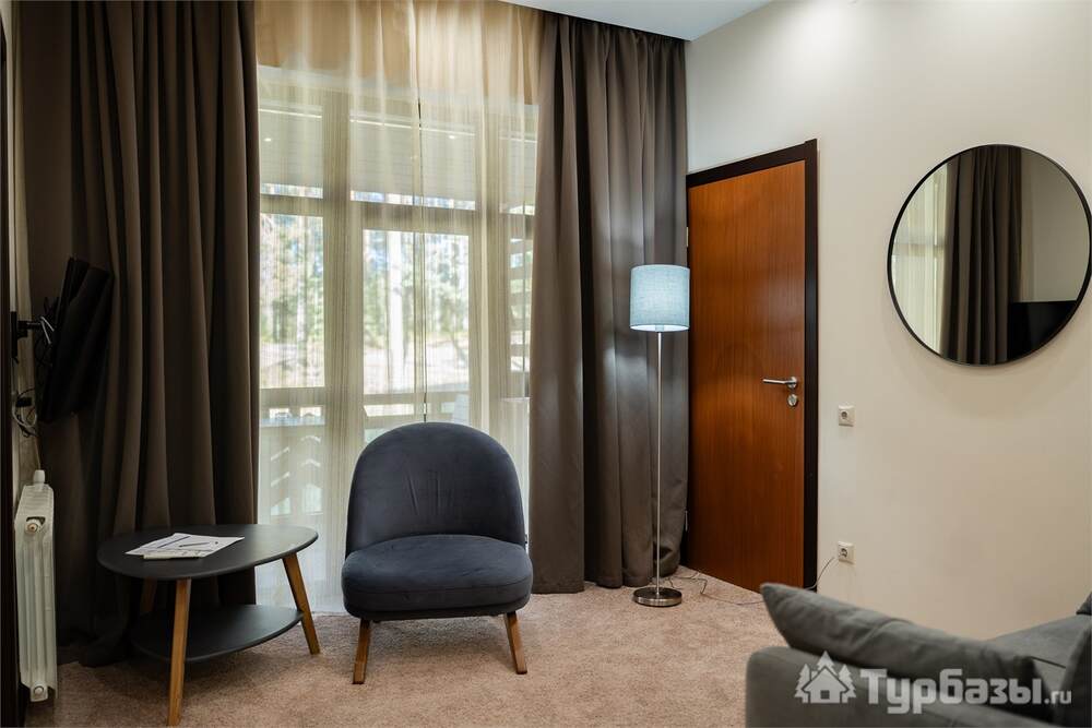 Номерной фонд совмещает уют загородного отеля и комфорт современного курорта: стандартные номера, семейные апартаменты и улучшенные люксы с видом на озеро или на лес. Во всех номерах — качественные кровати, климат-контроль, набор для чай/кофе и беспроводной интернет; в ряде категорий есть балконы и увеличенная гостевая зона. Для тех, кто хочет приватности, отель предлагает номера с отдельными террасами и выходом к прогулочным дорожкам парка.