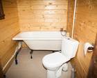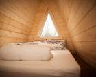 Небольшой семейный домик, рассчитанный на компанию от двух до четырех человек. В домике есть четыре спальных места, две раздельные кровати снизу и двуспальное место на втором этаже. Удобства и душ находятся недалеко от домика в отдельном помещении.
