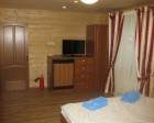 Для проживания предоставляются комфортные номера и дома-срубы. Дети в возрасте до пяти лет размещаются бесплатно. При оформлении в аренду одного из тридцати предлагаемых коттеджей приятным дополнением становится доставка завтрака.