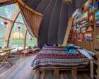 Каждая сфера – это интерьер из натуральных материалов, дизайнерская атмосфера и максимальный комфорт. Просторная терраса площадью около 100–120 м2 оборудована зоной отдыха, мангалом и банным чаном – идеальное место для вечернего уюта или семейных барбекю.