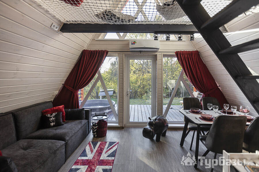 На территории — три разных по настроению домика: Винный, Тропики и Бохо; все домики подготовлены для круглогодичного проживания и оснащены кухнями (плита, мини-холодильник, микроволновка, чайник, набор посуды). У каждого домика есть собственная купель Фурако с подогревом на террасе (оплачивается отдельно). Парковка, мангальная зона у каждого домика и базовый набор бытовых мелочей входят в сервис.