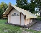 На лужайке установлены палатки-глэмпинги с необходимой для ночёвки мебелью (двуспальная кровать и все необходимое), есть террасы и костровые зоны. На территории работает кафе «Saloon», при желании можно арендовать беседку или приобрести подарочный сертификат.