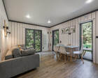 - домики для двоих: «Сосна», «Рябина», «Клён», «Ольха» — площадью 15 м2. Идеальны для романтических уикендов или тихих перезагрузок. В некоторых из них доступно размещение с животными до 35 кг.