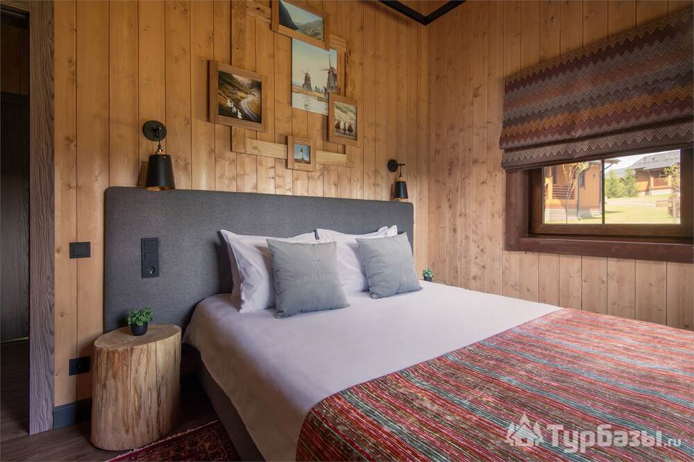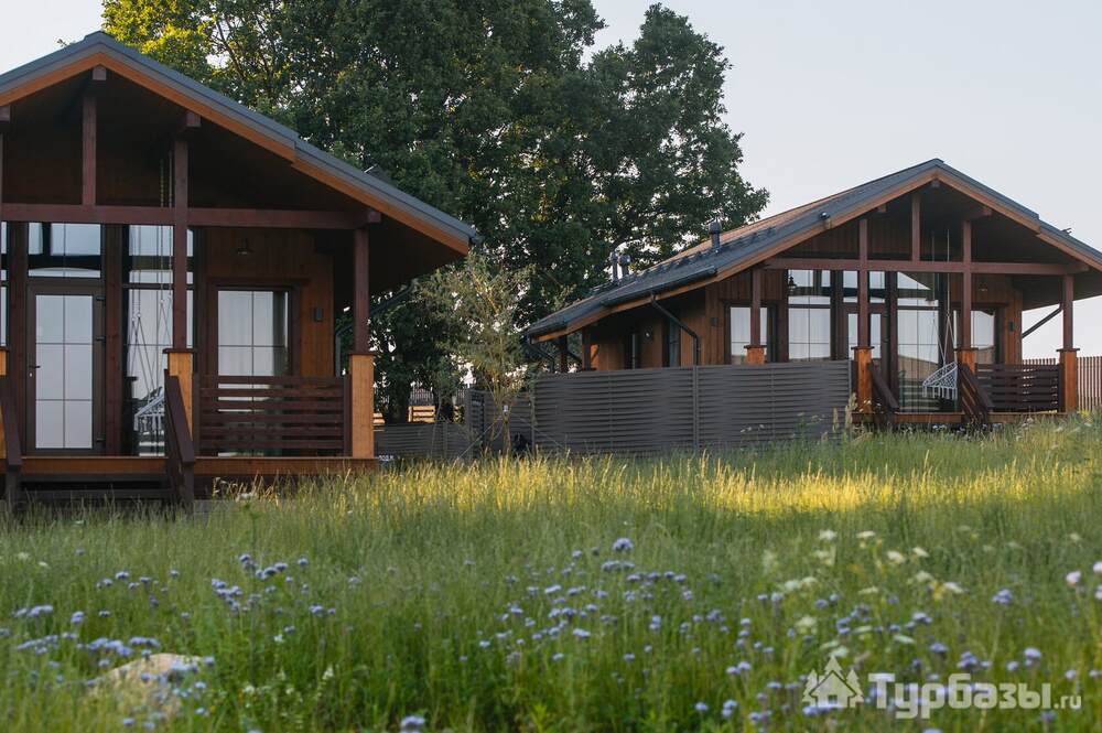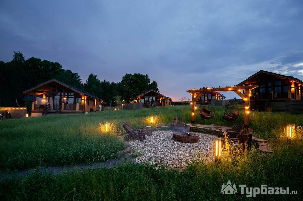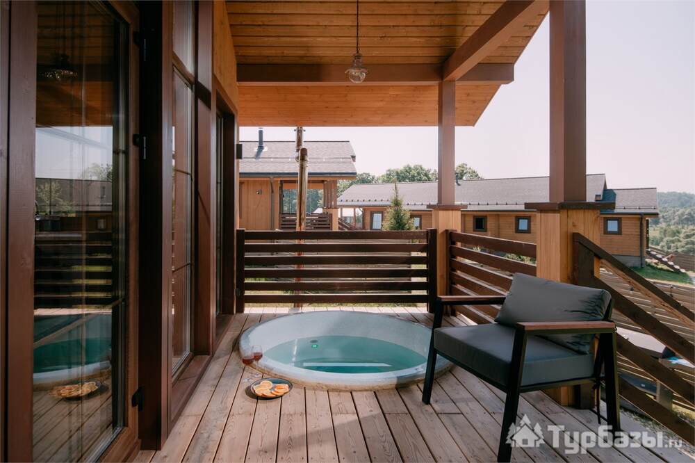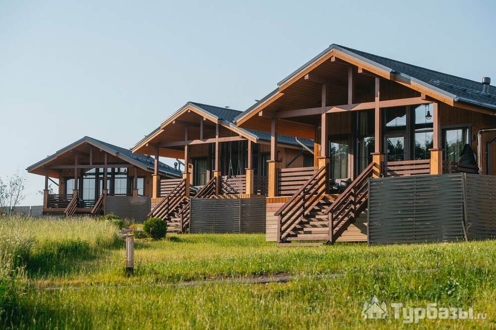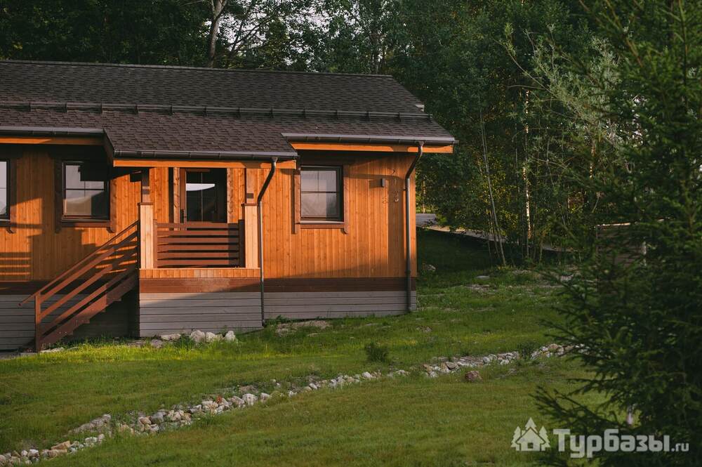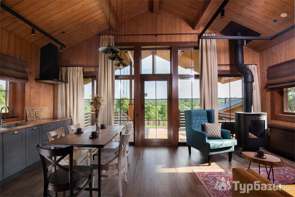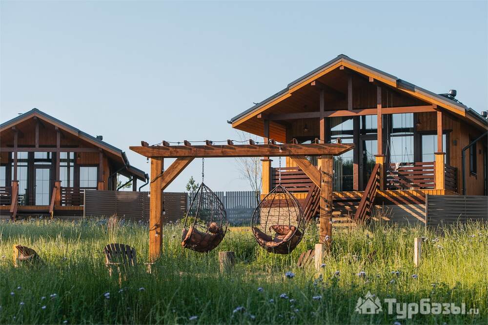 Гостей ждут стильные эко-лоджи с панорамными окнами и просторными террасами. Каждый домик оборудован камином, мини-кухней и зоной для отдыха на воздухе. Варианты размещения разные: от компактных коттеджей для двоих до просторных семейных домов с купелью или панорамной ванной.