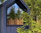 - «Черника» — стильная студия для двоих, с панорамным окном, мягким текстилем, беспроводными зарядными устройствами и даже проектором для уютных вечеров. Музыкальную атмосферу создаёт виниловый проигрыватель. Кухня оснащена всем, что может понадобиться — от кофемашины до микроволновки. На террасе — купель, барбекю, очаг, уличная мебель, а на прогулки в наличии тапочки-кроксы для каждого гостя.