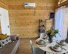 - «Крыжовник» — вариант для семьи или компании из 2–4 человек. Удобный модульный интерьер с диваном, полноценной кухней, обеденной зоной и собственной сауной. Также — купель на террасе, мангальная зона, качели, Wi-Fi.