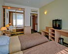 В корпусах предусмотрены пандусы и специальные «парковки» для колясок на нижних этажах. Для оформления номеров отеля использовали классический и восточный стили.