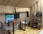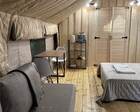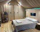 11 стильных сафари-вилл, с видом на лес или озеро. В каждой — своя терраса, мягкая кровать, отопление, душ и туалет, приятные мелочи вроде тапочек, халатов, фена и кофе-машины. Независимо от сезона — будь то зима или лето — внутри всегда тепло и уютно.