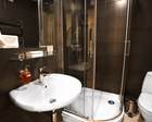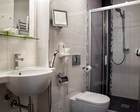 Номер представляет собой одну комнату, в которой находятся две 1/5 спальные кровати, тумбочки, шкаф, внутренний телефон, спутниковое телевидение. Санузел совместный с раковиной и душевой кабиной находится в номере.