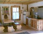Второй деревянный коттедж утеплен. В нем могут проживать 5 постояльцев. Есть кухня для самостоятельного приготовления пищи. Все удобства находятся на территории. Так же есть отдельно стоящая сауна. На прилегающей территории произрастает фруктовый сад.