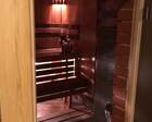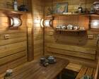 Чугунная печь бани Гефест производства РФ весит 1500 кг, обложена плитами из карельского талькохлорита. В отделке парной использована древесина сибирского кедра, ольхи, лиственницы, липы, осины, абхазского бука и даже африканского дуба абаша. Оригинальность парной придает и пространственная композиция, выполненная из керамической плитки, которая сделана вручную. Тщательно продумана вентиляционная система, обеспечивающая приток воздуха, что позволяет дольше находиться в парной. Комната для отдыха - в светлой цветовой гамме, в ней комфортно побеседовать с друзьями за кружкой пива. Душевая оборудована гидромассажным устройством, а горячую ванну можно принять с солями из Крыма. Многие после парной обливаются холодной водой из ведра или ныряют с причала в реку. Полы в помещениях приятно теплые.