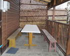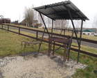 Площадка с кемпингом крытая, на ней стоит стол, мангал, также в наличии парковочные места, санузел, подведено электричество.