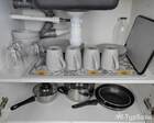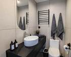 Спальня — двухспальная кровать, место для хранения вещей, панорамное окно, шторы-блэкаут. Ванная — душ тропический, туалет, раковина, зеркало, полотенцесушитель, средства гигиены, полотенца. Кухня — холодильник, электрическая плита, микроволновка, чайник, кофемашина-капсульная, приборы, посуда столовая, посуда для готовки.
