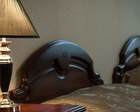 В теплых уютных спальнях располагается: двуспальная кровать с прикроватными ковриками, тумбочками и светильниками, комод с большим зеркалом, шкаф для одежды.