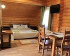 Гости смогут разместиться в уютных деревянных домиках, построенных из цельных сосновых бревен в стиле древнерусского зодчества. Благоустроенные номера, русская баня-сауна и вся необходимая для отдыха инфраструктура здесь тоже имеется.