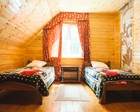Деревянные дома для гостей составляют единый архитектурный комплекс. Каждый дом поделён на два номера, оборудован русской печкой, большой верандой, отличной кухней с газовой плитой, обставлен уютной мягкой мебелью.