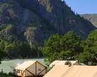На берегу Катуни для гостей установлен 21 уютный шатер, на открытой территории, где можно развести костер. Оборудован пляж, игровые зоны для ребят – никому скучать не придется.