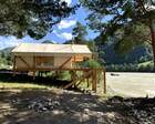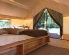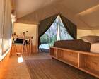 В парке установлены шатры – палатки, где созданы условия не хуже, чем в отеле. Из мебели есть 2-спальная кровать, стол, стулья, тумбочки, места для хранения одежды. Гости могут сервировать стол в шатре, для этих целей имеется посуда.