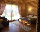 Гости проживают в благоустроенных домах площадью 24 и 36 квадратных метров. Каждый из них рассчитан на 4 постояльца. Номера оснащены душем, санузлом, электрообогревателем и бойлером. Из мебели имеется двухместная кровать, тумбочки и кресло. Так же для гостей предусмотрена микроволновая печь, чайник и посуда. В каждом домике есть терраса со столом и стульями.