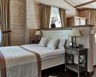 Для размещения предлагаются комфортные двухместные апартаменты. Апартаменты размещены в домиках из кедрового бруса и оборудованы в стиле «хай-тек». Всего на базе отдыха одиннадцать двухместных апартаментов для размещения двадцати двух человек одновременно.