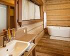 Шале для проживания изготовлено из экологически чистого кедра. Внутренняя отделка комбинируют в себе неповторимый дизайн и экологически чистые материалы. Турист получает качественный и уединённый отдых в заповедной зоне. Гостям предложены интересные развлечения, поездки на катере и не только.