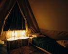 Интерьер шатров, разработанный сибирским дизайнером, порадует глаз и создаст теплую атмосферу. Внутри созданы все условия для комфортного проживания: удобные кровати, санитарный отсек с биотуалетом и умывальником, заполненным чистейшей водой из горной реки, письменный стол, на который можно поставить ноутбук, и дровяная печка, тепло которой отлично согреет в прохладную погоду. Шатры рассчитаны на 2 человек, но при необходимости можно создать еще 1-2 спальных места.
