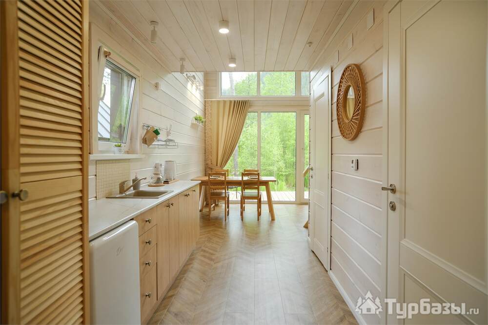На территории работает кафе (режим работы 9:00–21:00), кедровая баня и чан на дровах; есть мангальные зоны, беседки, детская и спортивная площадки, настольные игры и летний подогреваемый бассейн. Размещение представлено домиками, аилами, шале, барнхаусами и корпусом со стандартными номерами.