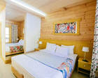Проживание осуществляется в комфортабельных коттеджах вместительностью 2-6 человек. Так же есть номера класса люкс вместительностью 2-3 постояльца. Готовить еду можно самостоятельно или заказать любимые блюда прямо в номер.
