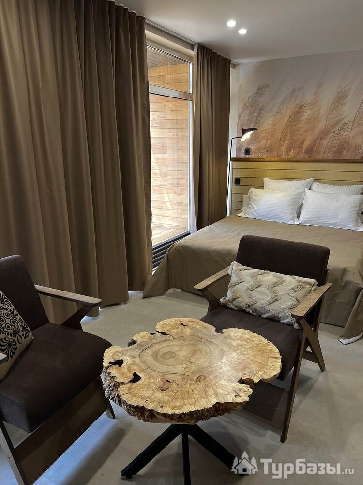 На базе отдыха представлены гостевые номера и небольшие деревянные домики с террасами; на территории — зоны для барбекю, места для отдыха, парковка и базовые сервисы для туристов. Посетители часто отмечают чистые, аккуратно оформленные номера и доброжелательное обслуживание.