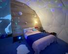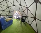 Домики рассчитаны на одного, двух и трех человек. Общая вместительность купольной деревни — 25 гостей. Зал площадью 80 кв. метров с панорамным остеклением купола позволяет проводить коллективные ретриты, заниматься йогой и всевозможными оздоровительными практиками.