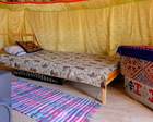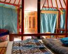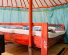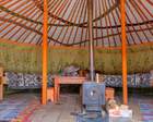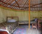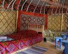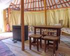 В летнее время путешественники проживают в традиционных алтайских юртах, а зимой в деревянном аиле или степном приюте. Летом в кемпинге работает открытая кухня. Приготовление блюд осуществляется по предварительному заказу. Так же имеется общая кухня, на которой туристы могут самостоятельно готовить еду. Есть огромная круглосуточная столовая в виде юрты.