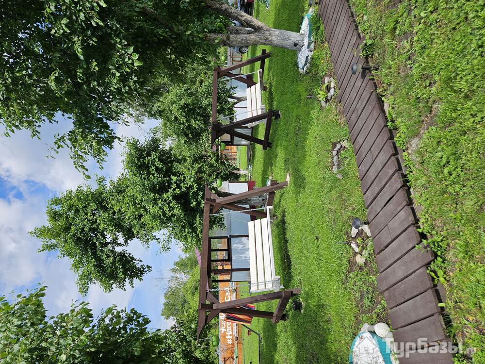 • Летний дом с террасой и живописным видом на горы включает в себя 6 номеров: - два номера с двуспальными кроватями, шкафами для одежды, санузлами, холодильниками, чайниками и с возможным одним дополнительным спальным местом; - четыре номера с двуспальными кроватями, шкафами для одежды, чайниками. Около дома мангальная зона.