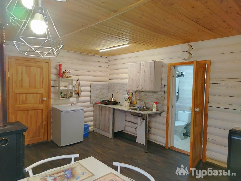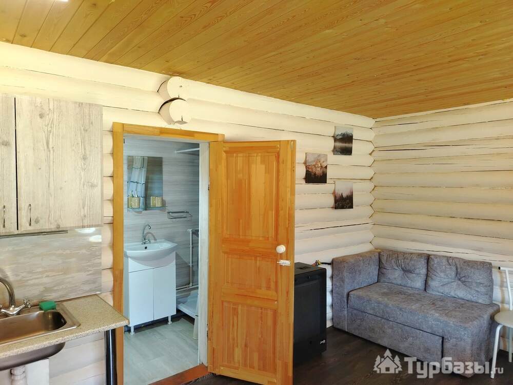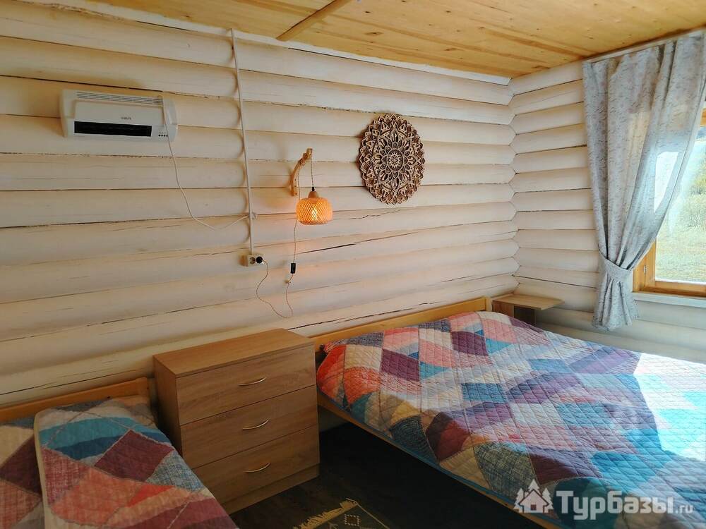 На базе представлены благоустроенные домики разного формата — среди них выделяют шале «Шанти-хаус» с большой обзорной верандой, кухней-гостиной и двумя спальнями; у домов есть мангальные зоны и организованные места для костра у берега. По факту это не «дикий» кемпинг, а спокойная эко-база с базовой инфраструктурой для комфортного проживания на природе.
