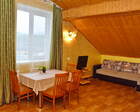 Так же на третьем этаже размещен конференц-зал вместительностью до 50 человек. Всего три корпуса и 23 комфортабельных номера. Для больших компаний есть три отдельно стоящие коттеджи.