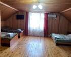 Двухэтажный коттедж (9 мест): три двухспальные кровати, три односпальные, кондиционер, холодильник, телевизор, общая кухня, душ и туалет во дворе, веранда с обеденной зоной.