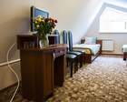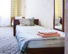 Номера для приезжих оформлены в теплых оттенках, на полу – теплое покрытие, ванные комнаты оборудованы душевыми кабинами.