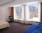 Изысканный номер для VIP — персон с великолепным панорамным видом на горы. В номере спальный гарнитур (Италия), мягкая мебель, камин, обеденный стол на 6 персон, стеллаж для одежды, ТВ, телефон, 2 санузла, джакузи, ванная комната, туалетные принадлежности.