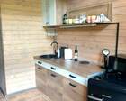 Гостей размещают в 2-этажном доме вместимостью до 8 персон. Окна в доме витражные, из них открывается великолепный вид на снежные вершины гор. В планировке дома 3 спальные комнаты, гостиная, кухонная зона, просторная терраса. Есть мангал. В стоимость проживания входит 2-часовое посещение жаркой бани.