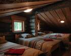 на мансардном этаже отдельная спальня с двуспальной кроватью и три односпальных кровати.