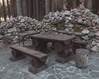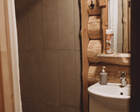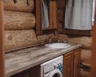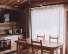 На мансардном этаже пять односпальных кроватей. Кухня-гостиная с камином из шунгита со всем необходимым для приготовления пищи.
