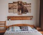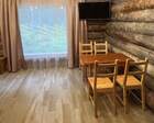 Коттедж разделен на 2 части с отдельными входами. В каждой части: 1 этаж 100 м2: две комнаты (в первой комнате — двуспальная кровать, во второй — двуспальная и односпальная кровати).