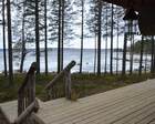 Мансардный этаж на 4 спальных места, большие панорамные окна и выход на просторный балкон с видом на Онежское озеро.