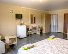 На территории комплекса есть 2 кафе. Одно из них летнее, а другое закрытое. Здесь отдыхающие могут насладиться вкусной домашней кухней. Для приготовления блюд используются только экологически чистые продукты из местной фермы. Так же гости могут готовить еду самостоятельно. На территории комплекса есть мангалы и барбекю.